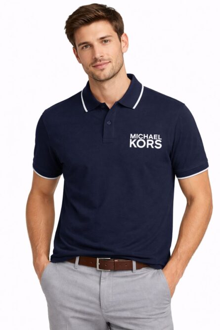 Playera Tipo Polo Michael Kors Hombre Azul Marino con Logo Blanco