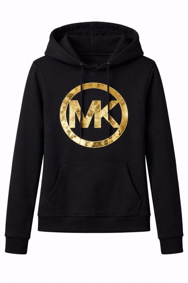Sudadera Michael Kors para mujer con diseño moderno y elegante, ideal para un look casual con un toque sofisticado. Confeccionada en tejido suave y cómodo, cuenta con capucha ajustable y el icónico logo MK en acabado dorado al frente, que aporta un estilo distintivo y premium.