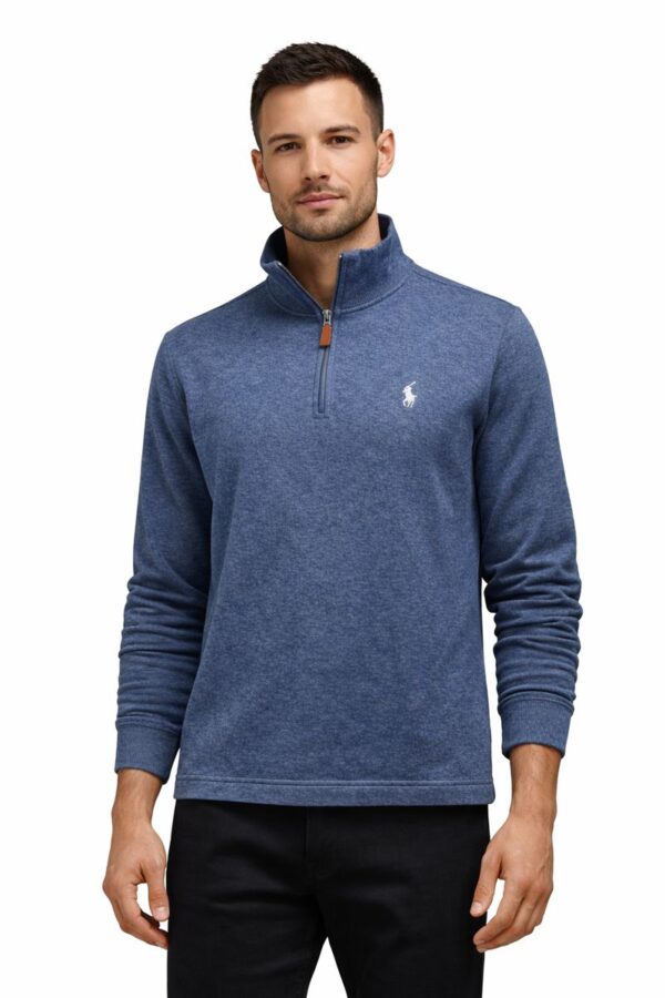 Suéter Ralph Lauren Hombre Azul Jaspeado con Cierre Medio